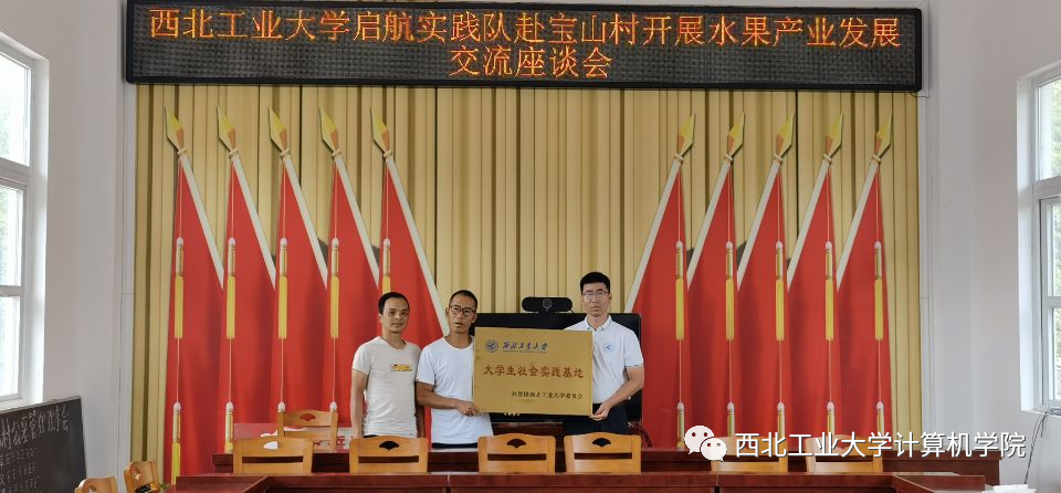最后,实践队在村委会举行了“pp电子游戏平台网站社会实践基地”挂牌仪式。实践基地的建立,不仅为宝山村提供智力支撑,加强宣传和扩大影响搭建了新的平台,同时,也为西工大学生利用好宝山村产品资源优势,深入一线,深入实践提供了新的载体。