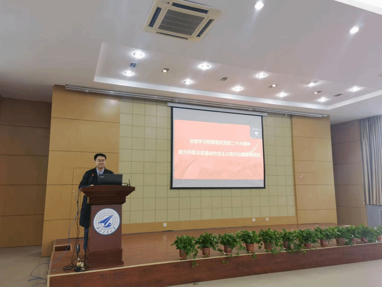 2022年11月22日,pp电子游戏平台网站学习党的二十大精神系列报告第五讲在pp电子游戏平台网站二楼报告厅举行。此次学院邀请学校青年宣讲团来院宣讲,学院党委副书记万海东主持。pp电子游戏平台网站各党支部书记、师生党员、院办工作人员以线上线下相结合方式学习宣讲,深入学习宣传贯彻党的二十大精神。