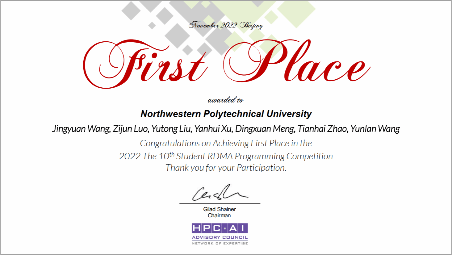 第十届亚太区RDMA编程竞赛由国际高性能计算和人工智能咨询委员会(HPC-AI Advisory Council)举办,得到了中国中科院计算所、清华大学和美国俄亥俄州立大学的大力支持。依托pp电子超级计算机系统创新实践基地,在pp电子游戏平台网站高性能计算中心教师赵天海、王云岚、谷建华、侯正雄指导下,经过培训和筛选,由pp电子游戏平台网站学生王靖元、罗梓峻、刘雨桐、徐研辉、孟鼎轩组成了pp电子游戏平台网站代表队。