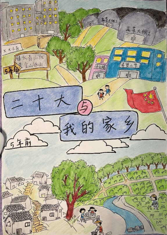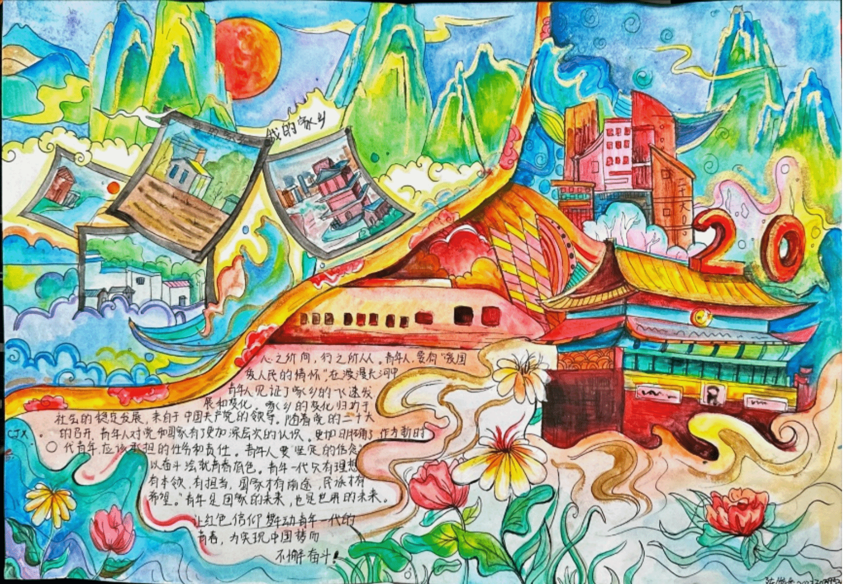在参赛者的妙笔下,一幅幅精美的红色画卷呈现在我们眼前。参赛者借助油彩笔等绘画工具,以笔为媒、以画传情,通过精心的布局、丰富的色彩,绘出热爱党的心声,将对党的感恩、对中国特色社会主义事业的热爱勾勒出红色印记,用色彩点燃爱国情怀,为党的二十大献礼。