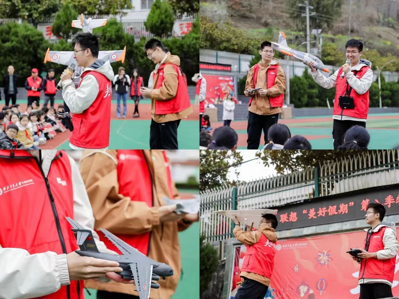 来自西工大航空学院的蓝色学堂航空科普志愿者服务队的志愿者们为孩子们带来了生动的航模讲解与飞行展示。小朋友们聚在一起专心倾听,积极参与互动问答环节,展现出对航空科技的无限好奇。当志愿者操纵模型机飞上天空后,孩子们都不由自主地发出了惊叹,他们仰望天空,视线紧紧追随那翱翔的飞机模型,如同他们的梦想在展翅腾飞。
