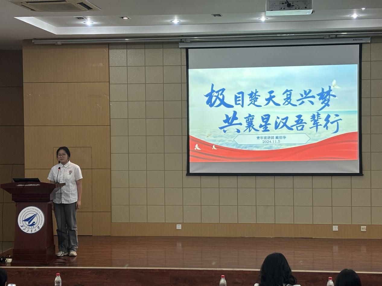 首先,团委老师张成薇为大家详细解读了“天下工大,世界三航”的核心内涵,号召与会学生们扎根中国、为国铸剑、胸怀天下、放眼全球、追求卓越。随后,青年宣讲团讲师分别从三航事业、文化自信、志愿服务和历史使命四个角度讲述了对党代会精神和中华民族复兴的思考。他们指出,新时代工大青年应争做“总师型“拔尖人才,并号召青年们接过先辈的接力棒,在中华民族民族复兴的道路上奋勇争先,不忘初心,奋勇向前。