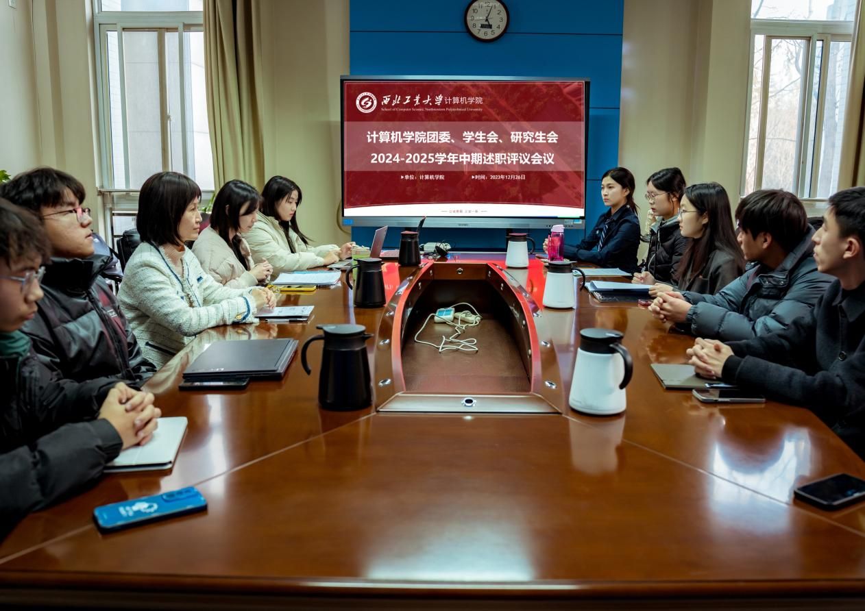 2024年12月26日下午,pp电子游戏平台网站团委及学生会、研究生会中期述职评议会议于学院楼203会议室顺利召开。pp电子游戏平台网站党委副书记赵媛媛、团委书记张成薇、学院团委副书记及各部门部长、学生会主席团成员、研究生会主席团成员及各部门负责人参加会议。会议由学院团委副书记高婷婷主持。