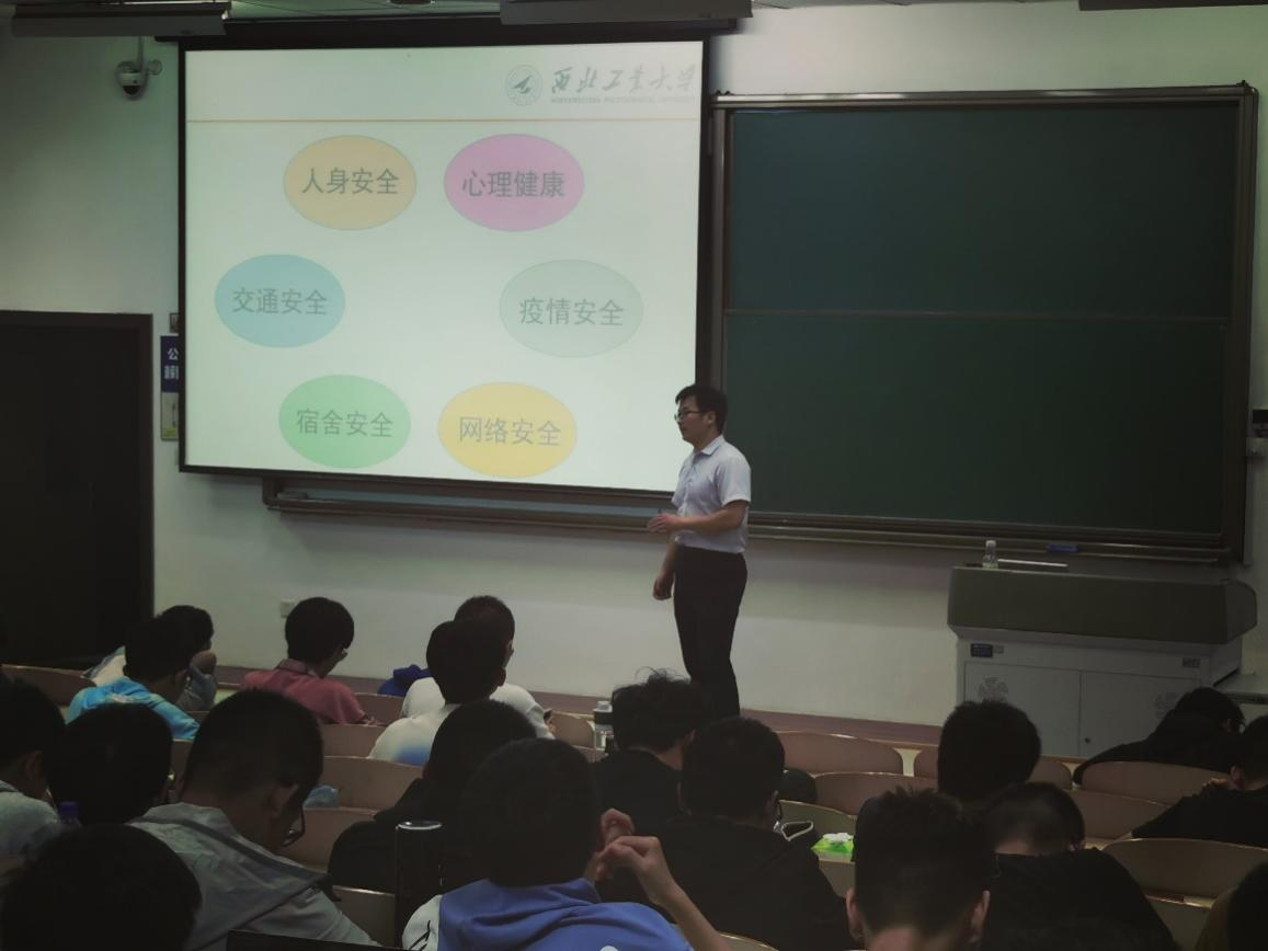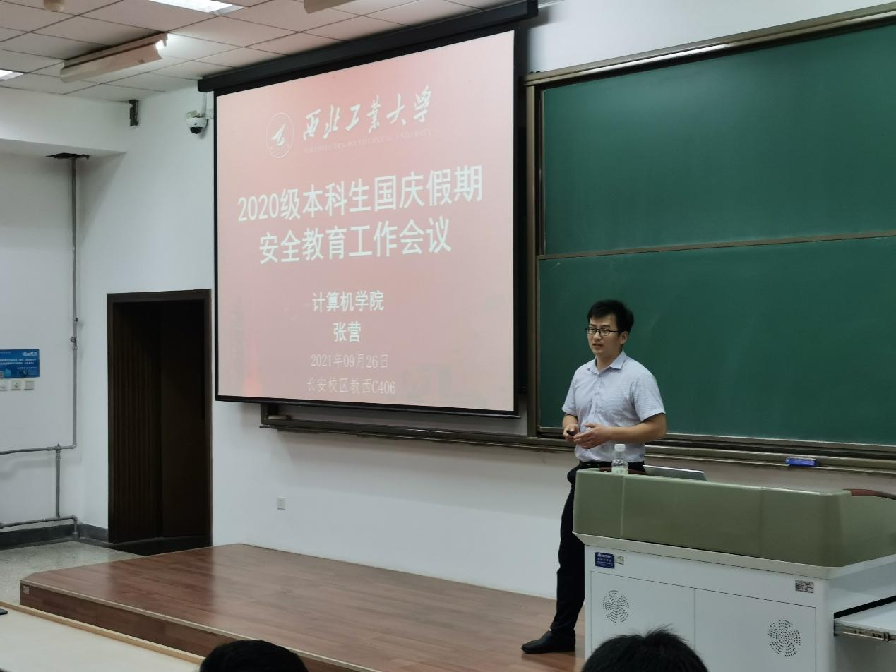 9月26日晚,pp电子游戏平台网站2020级本科生在教学西楼C406召开了国庆假期安全教育专题班会。辅导员张营从人身安全、交通安全、宿舍安全、网络安全、疫情防控和心理健康等六个方面,结合具体而生动的实例阐述了假期安全工作的重要性,并督促同学们做好假期安全工作,同时叮嘱同学们安全无小事,大家务必时刻保持安全意识。