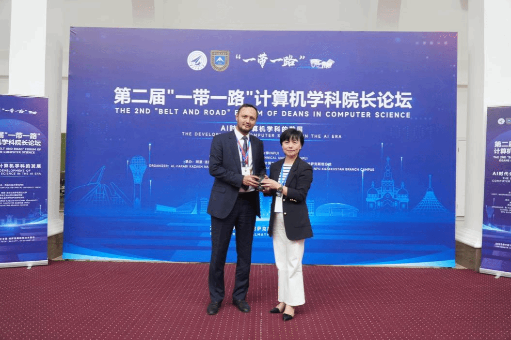 为感谢阿里 · 法拉比哈萨克斯坦国立大学对本届论坛的大力支持,西工大pp电子游戏平台网站院长尚学群代表学院向哈国立信息 技术 学院Timur Imankulov赠送了“何尊”纪念品 , 希望双方能够以本次论坛为纽带,进一步深化交流合作,共同为中哈命运共同体建设注入数字时代的强劲动力。