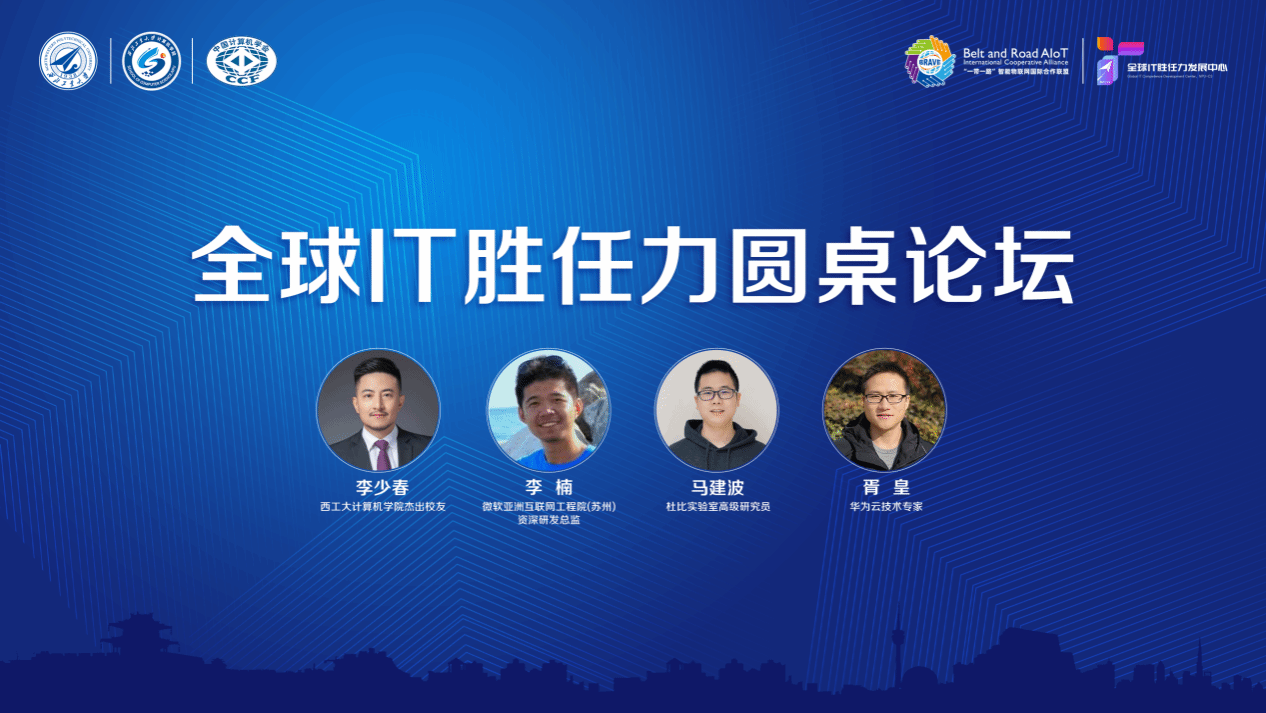 论坛第二部分以圆桌讨论的形式展开,由孙卓主持,来自华为云技术专家胥皇博士,微软亚洲互联网工程院(苏州)资深研发总监李楠,杜比实验室高级研究员马建波,以及知名跨国企业的李少春参加了讨论。四位专家从专业技能、领域知识、技术合作、团队管理、领导能力等几个方面进行了讨论,鼓励各位同学提高合作能力,沟通能力,学习能力。不断提升个人技能,构建自己的竞争力。
